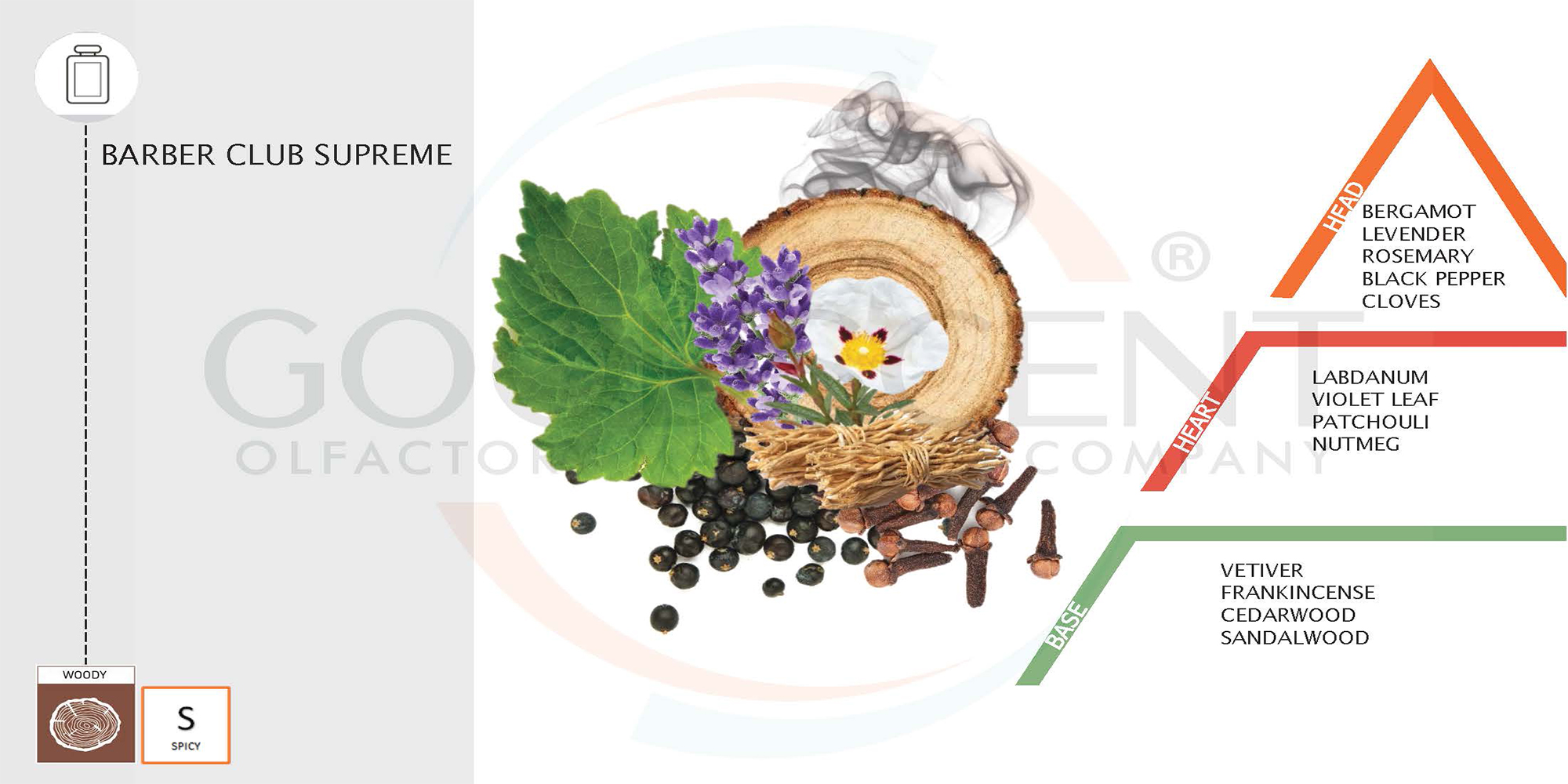 Note de Vârf: Bergamotă, Cuișoare, Lavandă, Rozmarin, Piper negru